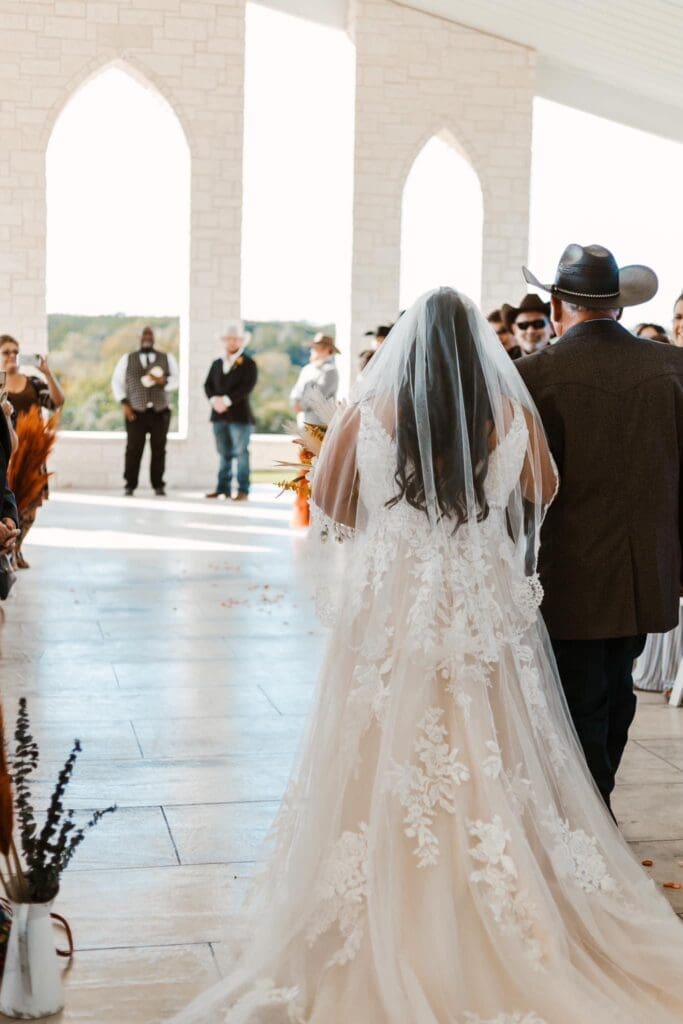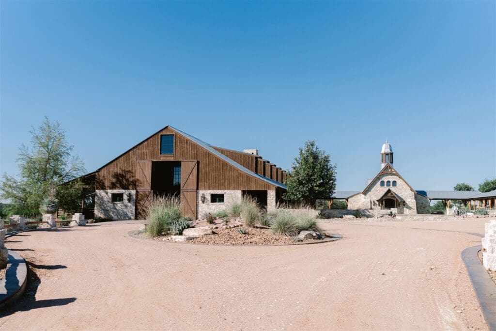 Next up, is Hidden River Ranch. Located just over an hour northwest from Austin, Hidden River Ranch is located in Lampasas, Texas. Acres of mature oak trees greet you on the drive in, which offers a rustic feel. I love the flow of this venue from the bridal suite, reception space, chapel, and cocktail hour courtyard! It was all planned out very well to ensure a flawless event. Plus, the chapel is an absolutely beautiful option for your wedding ceremony! I might be a little biased for this one since it is where I got married in 2020!