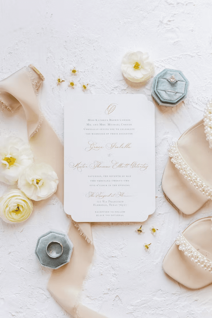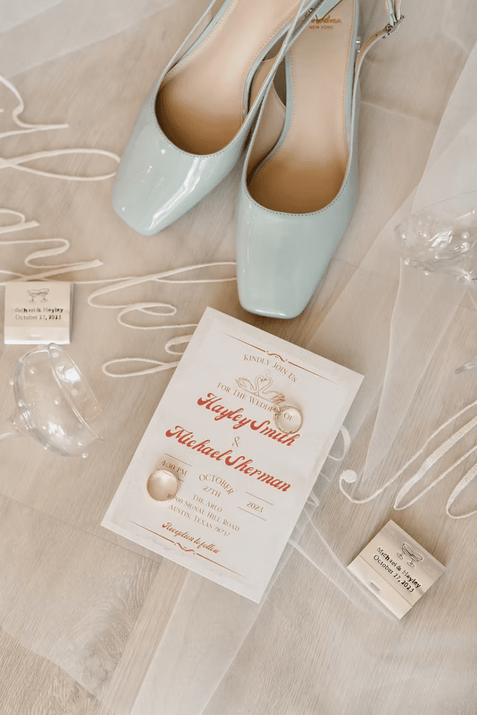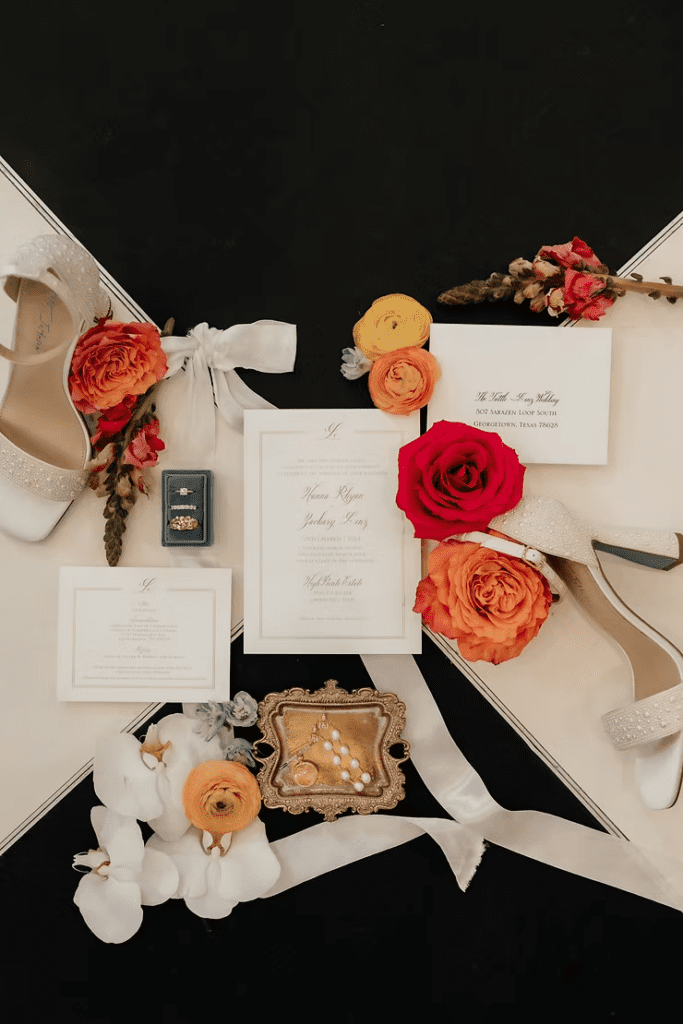 Allowing the photographer to have plenty of time to arrange the flat lays is important. Be sure your planner knows you want those photos so that she can build in time on the timeline! This will ensure that things run smoothly, that the photos are captured, and that you remember the fun and meaningful details from your wedding day for years to come!